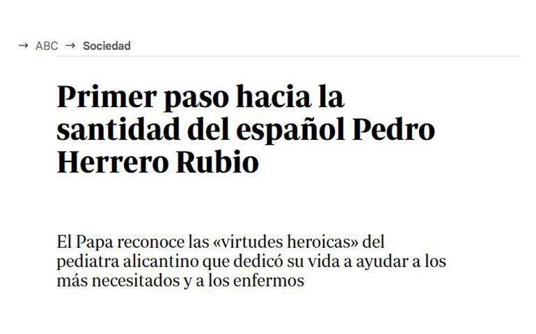 Causa de Canonización del Médico pediatra Don Pedro Herrero Rubio, reconocido por su entrega a los más necesitados y su ejemplar vida cristiana.